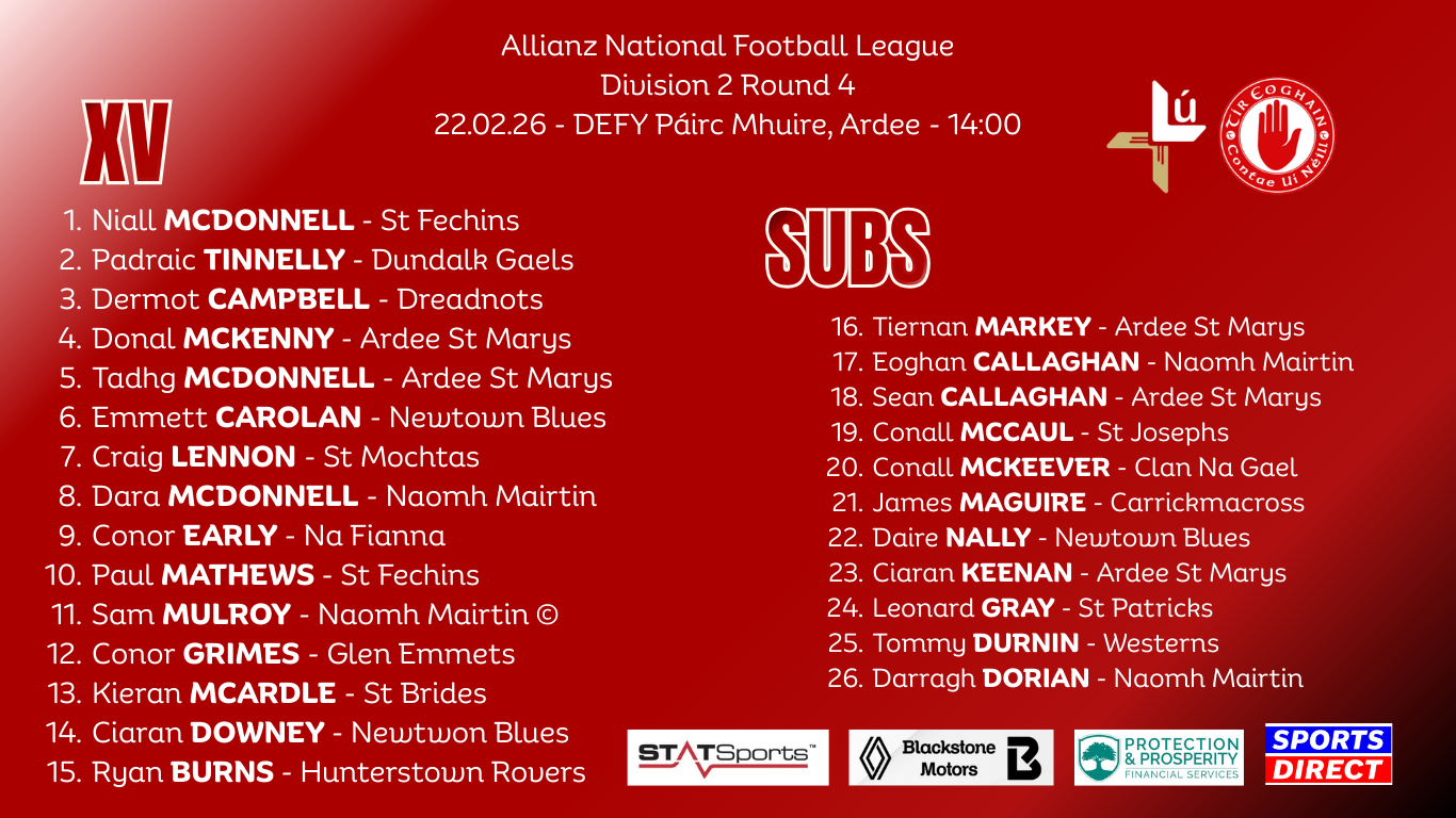 TEAM NEWS | Louth 26 for Sold Out Tyrone Clash